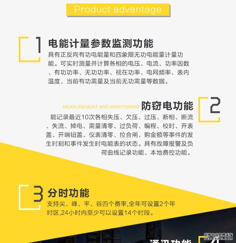 - 主要功能:有功,功率因素,有功功率,無功功能,視在功率,四象限無功,電壓,電流,事件報警,費控,需量