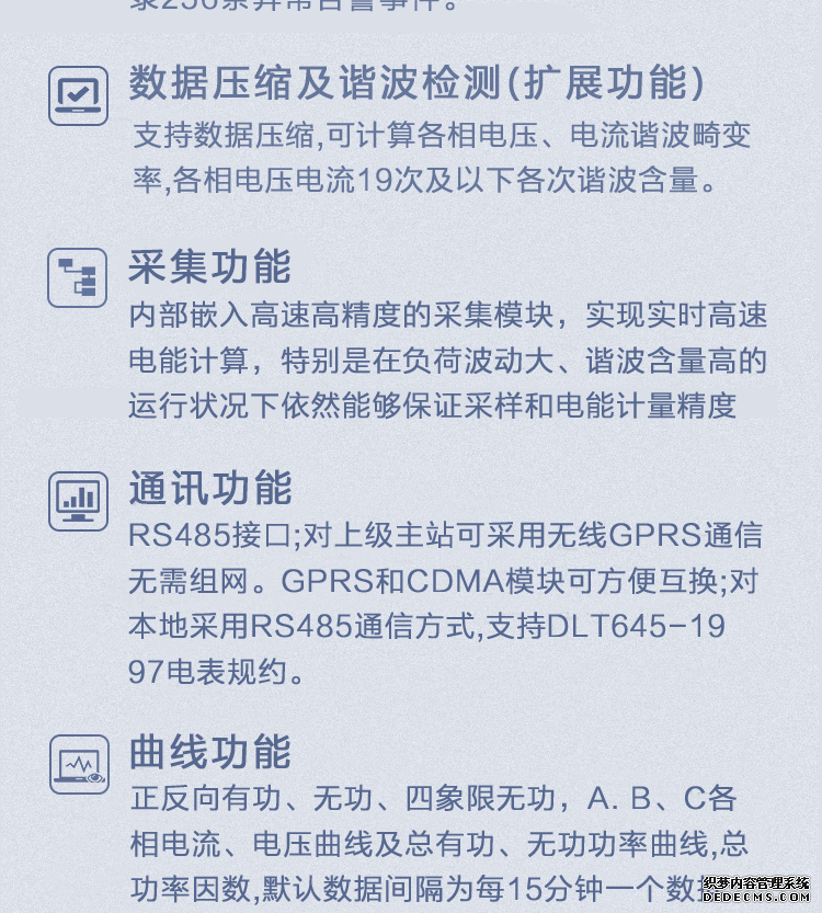 - 主要功能:有功,功率因素,有功功率,無功功能,電壓,電流,需量,諧波