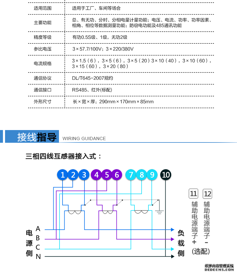 接線制式:三相四線制
