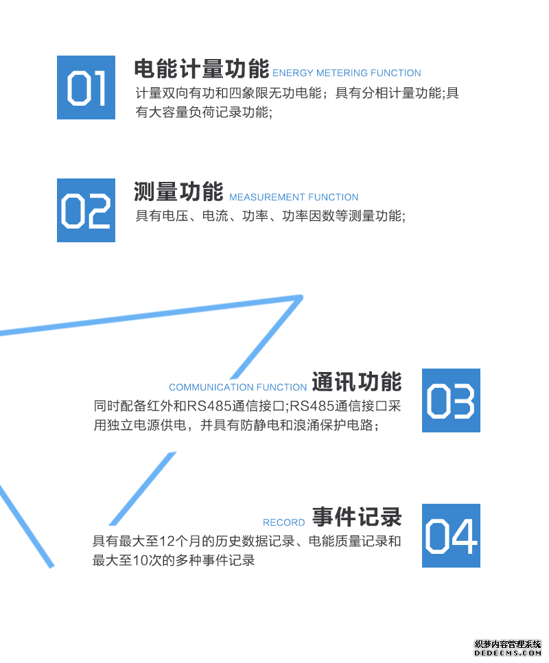 - 主要功能:有功,功率因素,有功功率,四象限無功,電壓,電流,需量