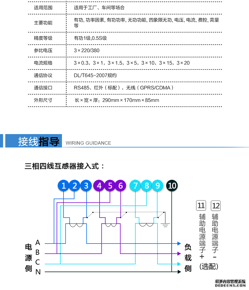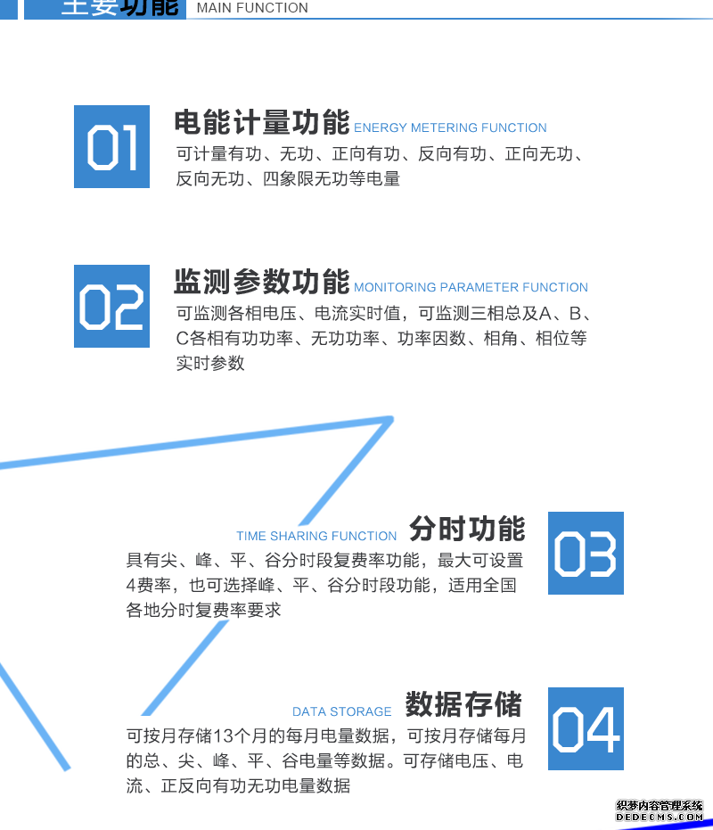 - 主要功能:有功,功率因素,有功功率,無功功能,四象限無功,電壓,電流,事件報警,費控