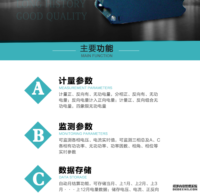 - 主要功能:有功,功率因素,有功功率,無功功能,視在功率,電壓,電流