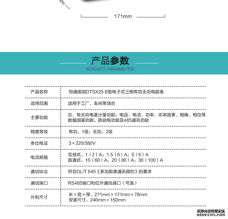 恒通國測DTSX25 B型電子式三相有功無功電能表