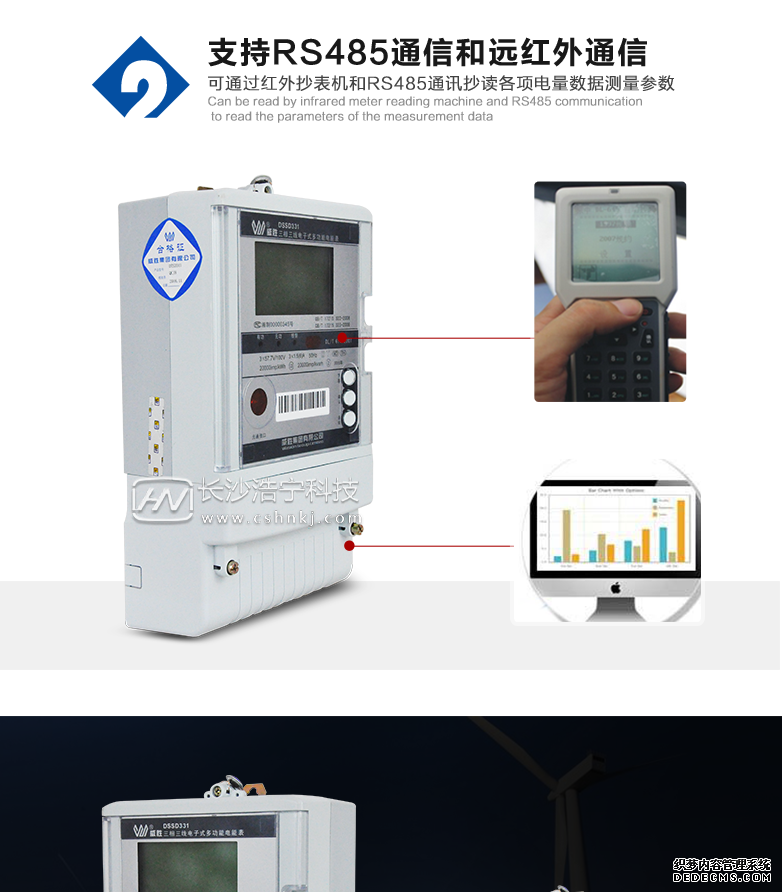 - 主要功能:有功,功率因素,有功功率,無功功能,視在功率,四象限無功,電壓,電流,事件報警,載波,需量,諧波
