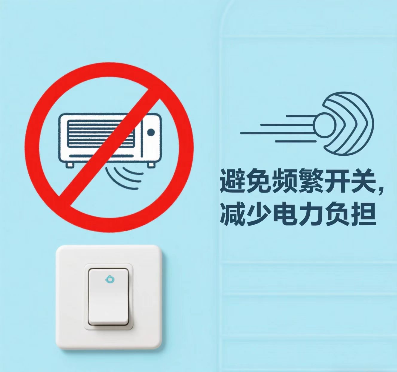 2、空調(diào)啟動的需要的功率和電流是最大的,頻繁開關(guān)不僅不能省電,反而會增加空調(diào)和電力的負擔(dān)。